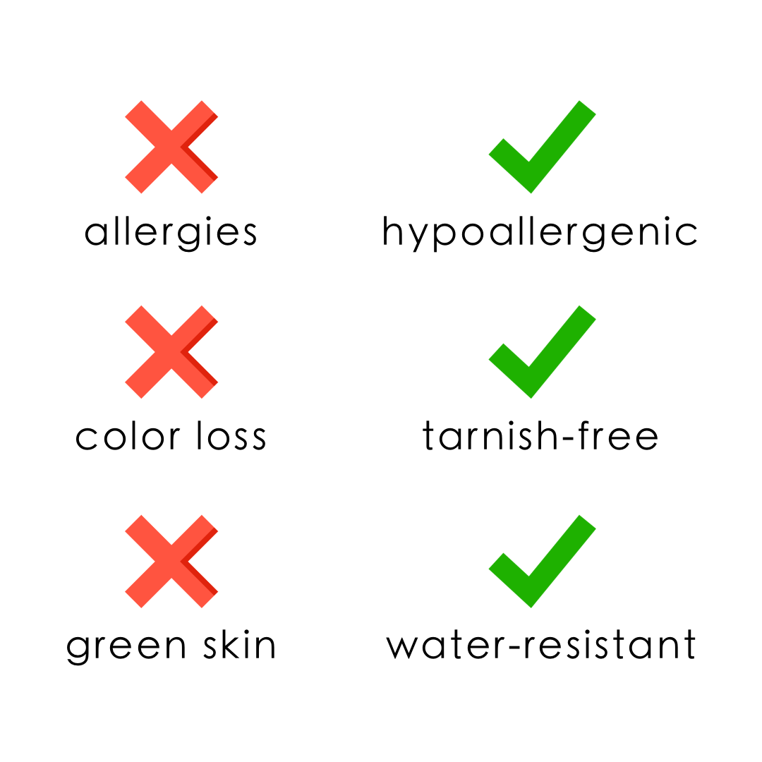 We provide a lifetime color guarantee! We are confident that our jewellery willretainits color indefinitely. Should your jewellery lose its golden hue, please contact us by email and we will replace it with a brand new item, no questions asked.